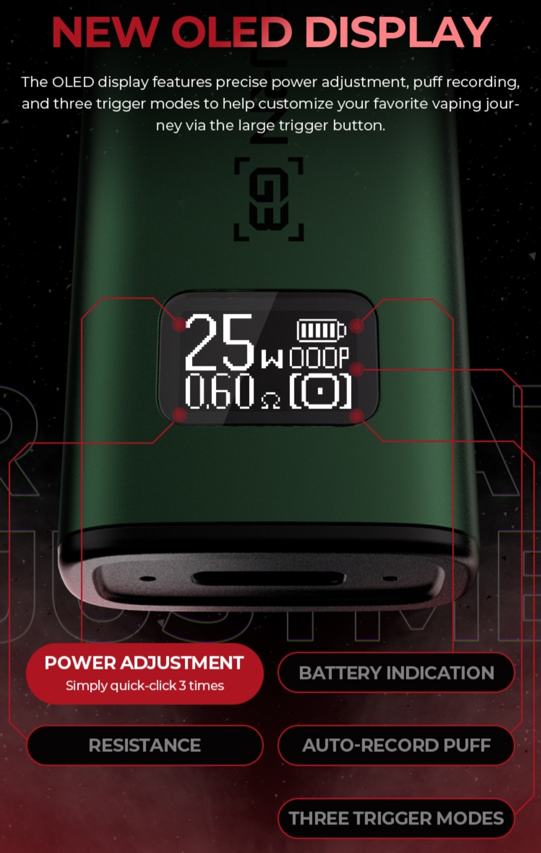 OLED 螢幕清晰顯示功率和電量。