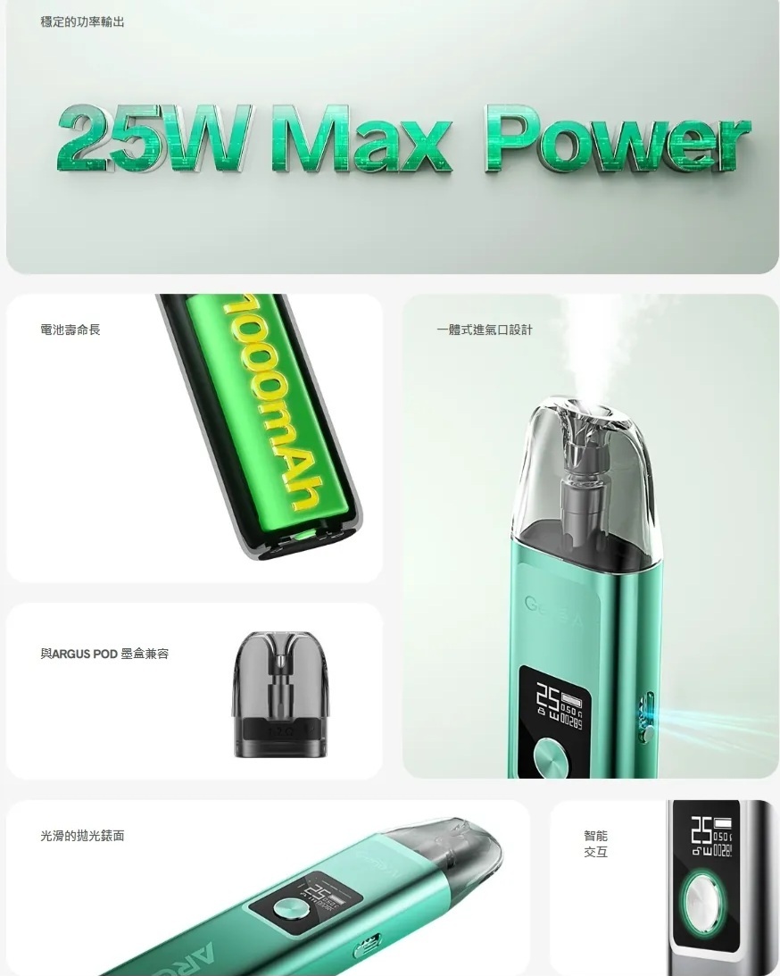 ARGUS G採用VOOPOO ITO技術,口感順滑,線圈壽命長。